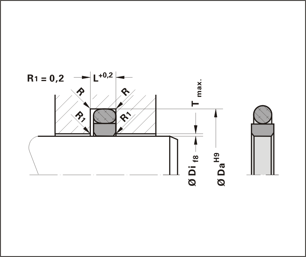 | Material of Glide Ringmod. PTFE (25T) | Material Properties of Glide RingVery good chemical resistance, suitable for food stuff applications | O-Ring MaterialFKM | Material Code0046X |