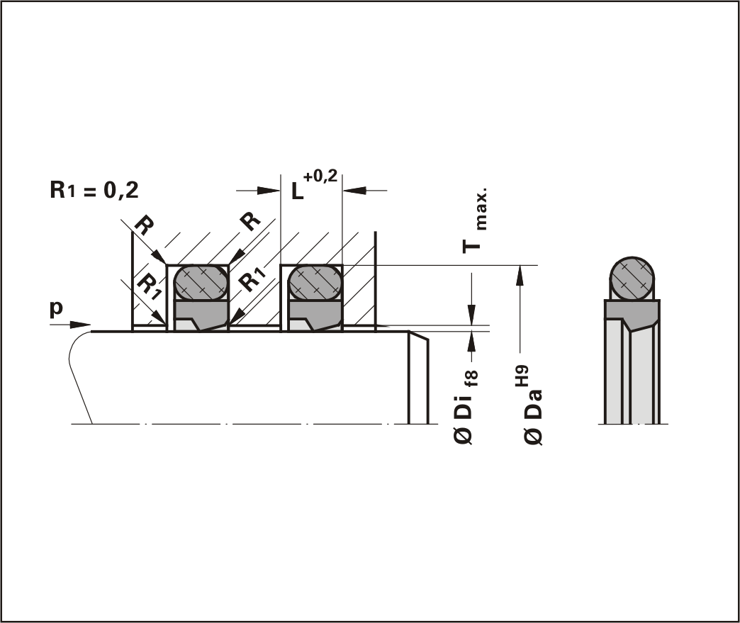 | Material of Glide Ringmod. PTFE (25T) | Material Properties of Glide RingVery good chemical resistance, suitable for food stuff applications | O-Ring MaterialFKM | Material Code0046X |