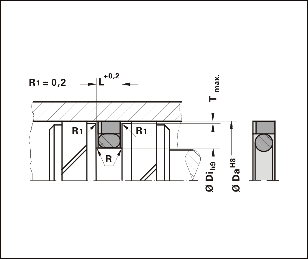 | Material of Glide Ringmod. PTFE (25T) | Material Properties of Glide RingVery good chemical resistance, suitable for food stuff applications | O-Ring MaterialFKM | Material Code0046X |