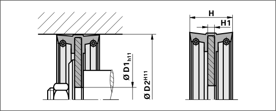 | Profile | D2 [mm] | D1 [mm] | H [mm] | h1 [mm] | Material | Mat. No. | V | Quantity |