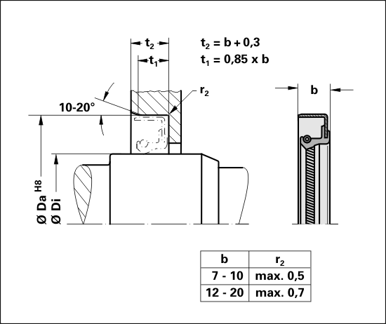 Shaft seal with metallic casing (formerly DIN 3760 Form B), with twist left.