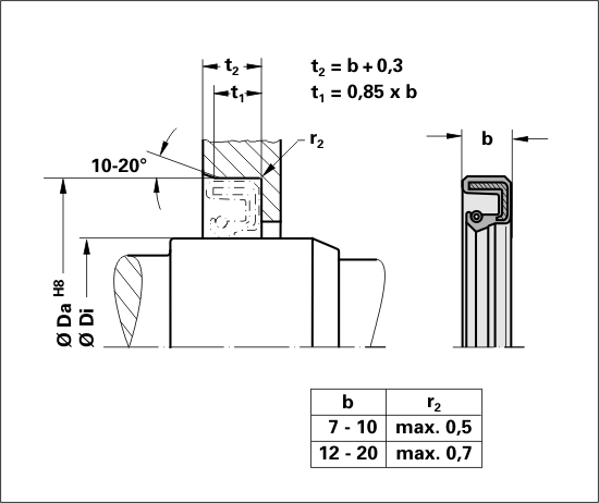 Shaft seal, DIN 3760, Form A up to 1,5 bar.