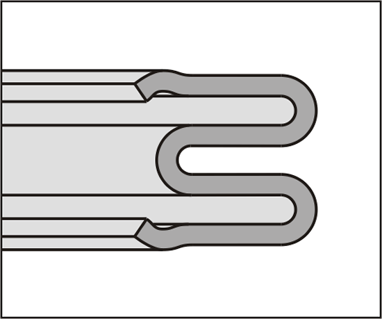 Metal E-Ring, inside pressure, for static sealings.