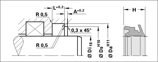 Design: The double wiper has two elastic lips made of PUR, one of which acts as a wiper lip and one as a sealing lip. The sealing lip reduces the residual oil film by wiping it inwards. An additional dirt shield prevents the penetration of dirt and moisture, especially on vertical cylinder rods. It also has a pressure relief hole, which prevents a pressure build up between the wiper lip and the sealing-/wiper lips.